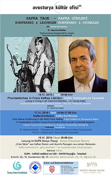 Von 16. bis 18. November 2016 finden drei Veranstaltungen zu Franz Kafka in Istanbul statt.